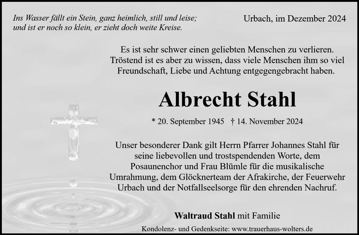 Der Tod von Albrecht hat mich schwer getroffen. Haben wir doch während der Zeit des Studiums intensiv zusammen gearbeitet und viel Zeit miteinander verbracht. Auch gab es Situationen, wo wir uns mit dem Lernstoff nicht so leicht getan haben. Da war mir Albrecht immer eine große Stütze mit Seiner fröhlichen und zuversichtlichen Art, die dann manche "Berge" kleiner gemacht haben.
