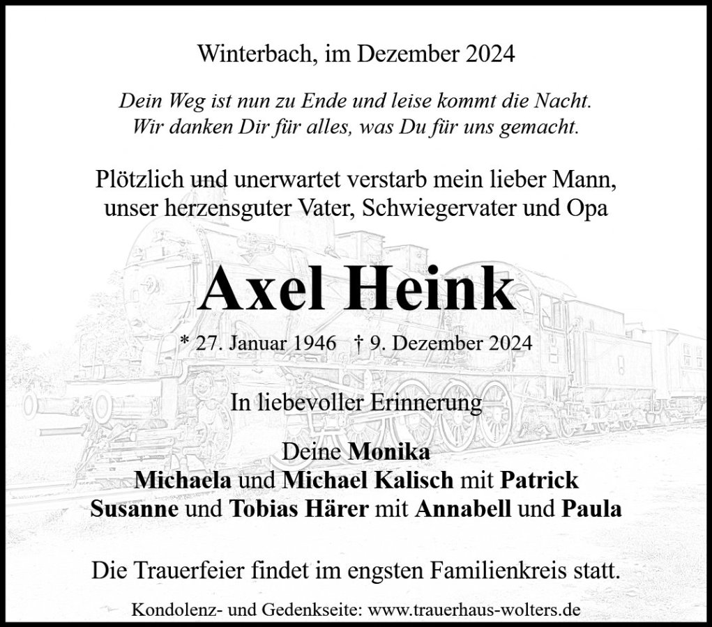 Anteilnahme aussprechen auch im namen meines bruders herbert. wir waren fast 38 jahre täglich zusammen.Axel warein geschätzter und zuverlässiger