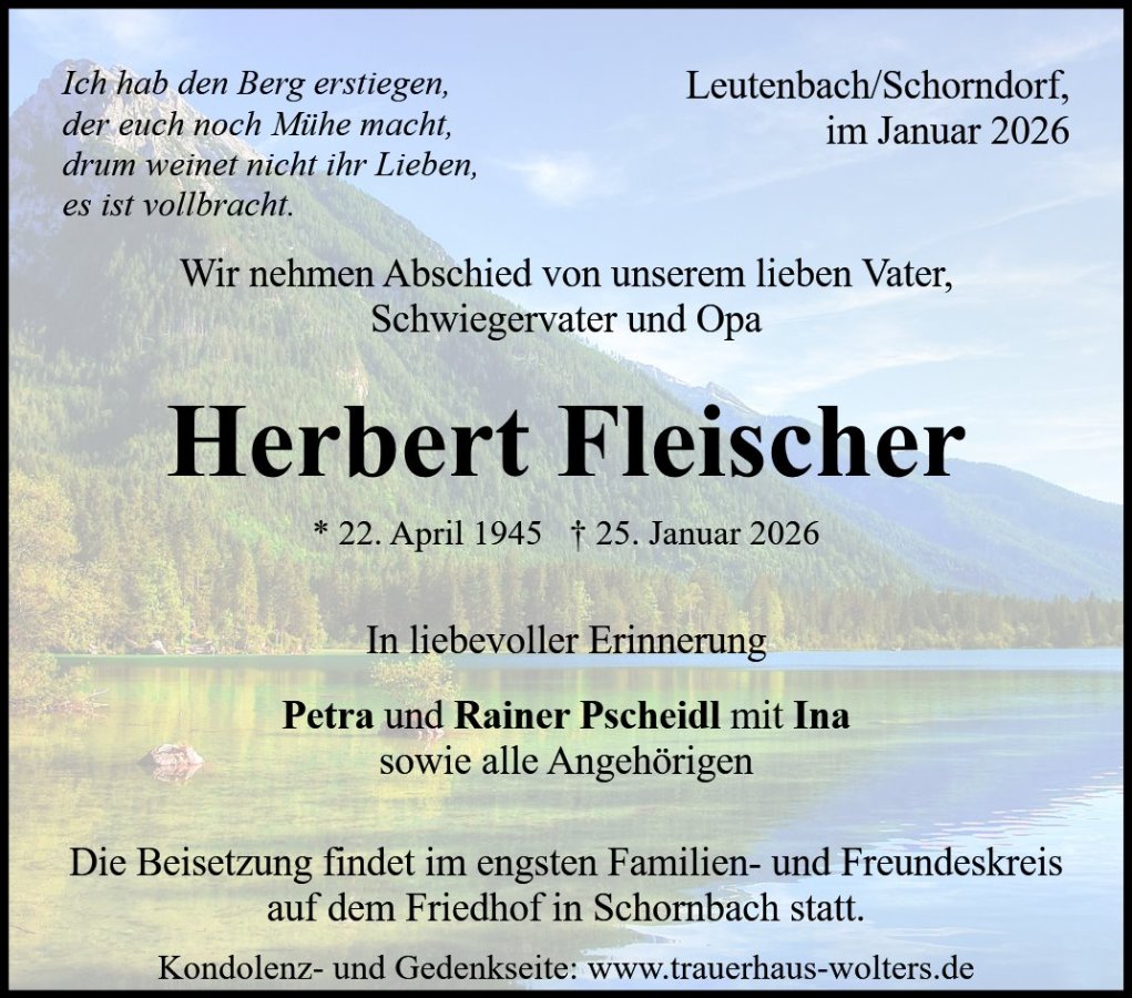in dieser Zeit des Schmerzes wünschen wir Ihnen Kraft, den Verlust im Kreise Ihrer Liebsten zu verarbeiten. Als Zeichen unserer Anteilnahme und des Gedenkens entzünden wir dieses erste Licht. Möge diese Gedenkseite Ihnen helfen, Erinnerungen zu teilen und so das Andenken gemeinsam wachzuhalten.