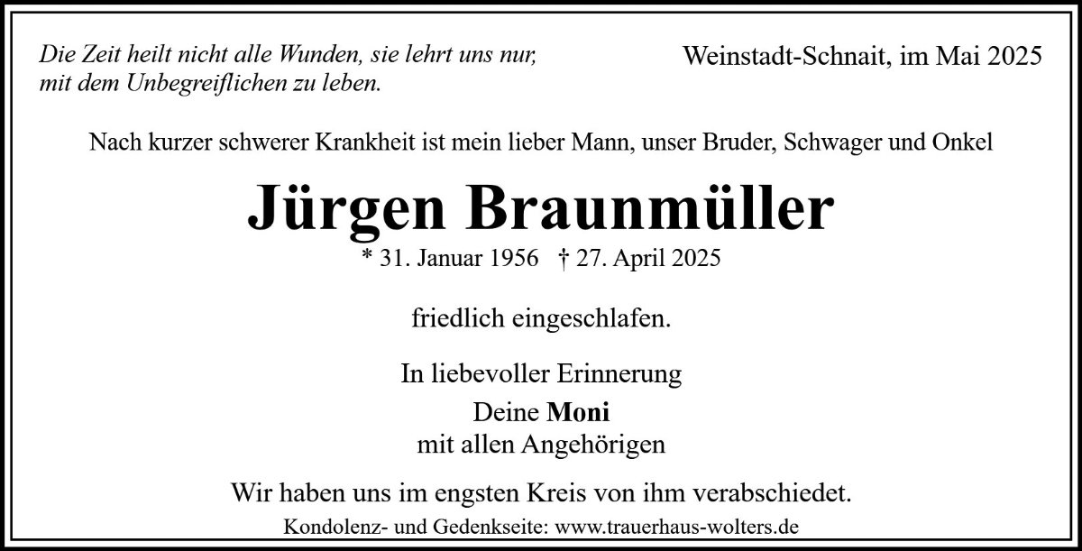 wir fühlen mit Ihnen und wünschen Ihnen viel Kraft, Zuversicht und viele schöne Erinnerungen an gemeinsame Erlebnisse mit Ihrem Mann. Es tut uns sehr leid, dass er verstorben ist. Wir haben Ihren Mann als einen sehr freundlichen Menschen und Nachbarn kennengelernt. Immer ein Gruß, ein Winken, ein Lächeln, als wir uns sahen. Oft auch, wenn Sie beide wie immer Sonntags zum Wellness gefahren sind. Gerade vor ein paar Wochen hatte er noch extra angehalten, um ein paar Worte zu wechseln.